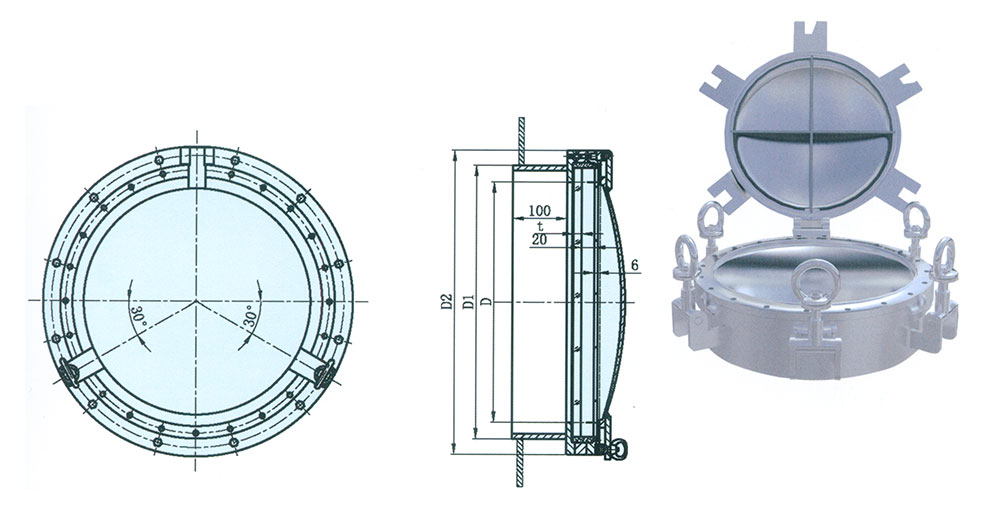 | nominal D | opening size of bulkhead D1 | extemal size D2 | glass thickness | weight | |