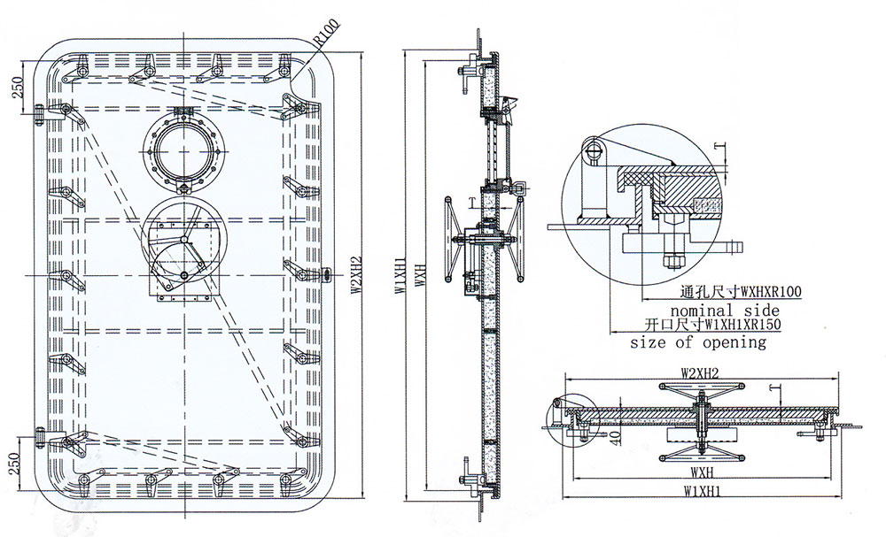 | 通孔尺寸HxW | 门板尺寸 | 围壁开口尺寸H1xW1 | 门板厚度T | 轧扣数量 |